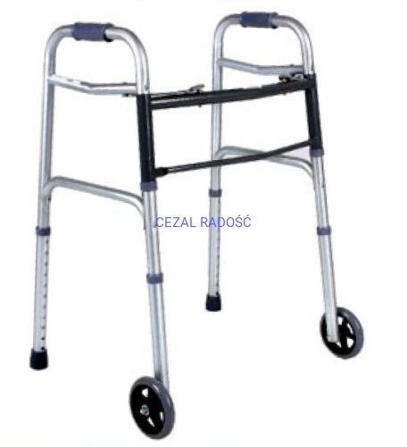 Jest bardzo lekki, składany z regulacją wysokości. Znacząco ułatwia pacjentowi poruszanie się i pionizację. Chodzik idealnie nadaje się do małych mieszkań. Doskonale sprawdzi się w ciasnych korytarzach jak również w małych łazienkach. Chodzik posiada 2 stopki podporowe zakończone gumą zabezpieczającą przed poślizgiem i 2 kółka przednie o średnicy 12cm.