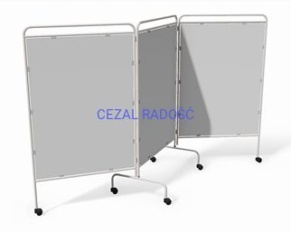 Potrójny parawan metalowy z ekranem z płyty PCV dostępnym w kolorze białym-mlecznym. Łatwy do utrzymania w czystości. Stelaż wykonany z mocnych metalowych rurek. Wyposażony w sześć kółeczek ułatwiające przemieszczanie parawanu, idealny do gabinetów lekarskich, szpitali salonów kosmetycznych i SPA.