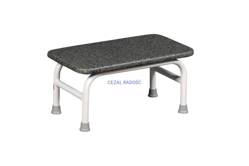 Schodki pokryte są antypoślizgową wykładziną (atestowaną). Stelaż metalowy, malowany proszkowo na kolor biały. Nóżki podnóżka są zabezpieczone gumowymi stopkami, które zapobiegają przesuwaniu.