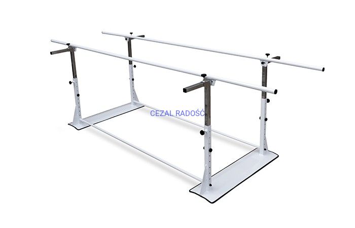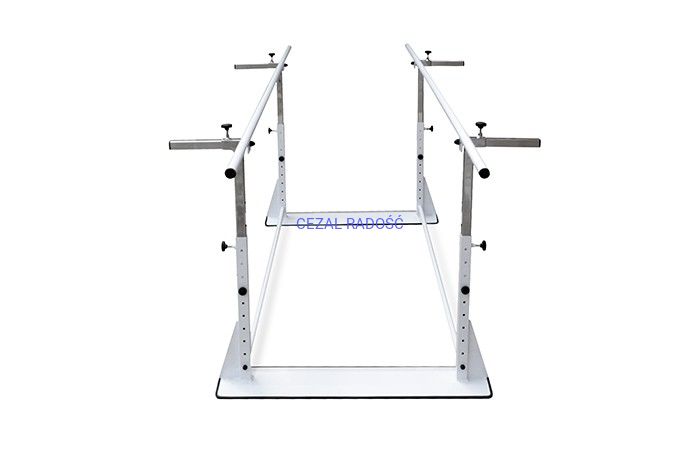 Poręcze do nauki chodzenia pomocne do poprawy koordynacji, siły mięśni, elastyczności oraz rehabilitacji. Poręcze mogą być stosowane w ośrodkach medycznych, sanatoriach w szczególności u pacjentów z dysfunkcjami kończyn dolnych. Konstrukcja poręczy wykonana została ze stalowych profili pokrytych odporną na porysowania, białą farbą proszkową. Możliwa regulacja wysokości oraz rozstawu pomaga dostosować poręcze do postury ćwiczącego.