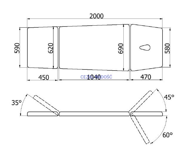 • Regulacja kąta nachylenia podnóżka: od 0 ° do +35 °