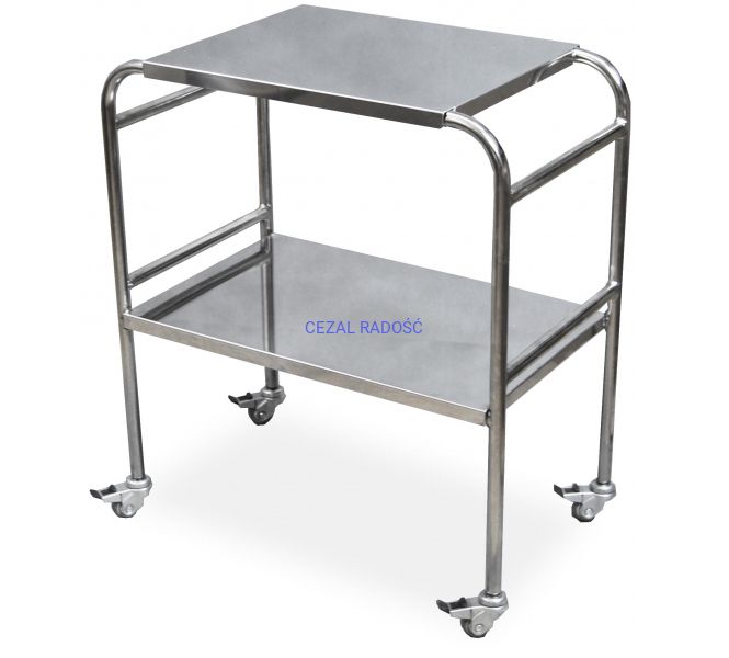 Stolik STZ-02 chromowany idealnie nadaje się jako wyposażenie placówek medycznych czy też gabinetów kosmetycznych. Cała konstrukcja stolika jest chromowana. Stolik posiada dwie póki wykonane ze stali nierdzewnej. Podstawa mobilna wyposażona jest w cztery kółka w tym dwa z hamulcem.