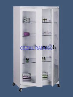 Szafa lekarska Sml 113 idealnie nadaje się jako wyposażenie gabinetów lekarskich, aptek oraz innych pomieszczeń medyczny. Trwałe wykonanie oraz elegancki wygląd sprawiają, iż szafa jest w pełni funkcjonalna. Korpus szafy wykonany jest z blachy o grubości 0.8 mm. Podwójne drzwi szafy są przeszklone, zaś półki szklane z możliwością przestawiania co 25 mm. Uchwyt drzwi posiada zamek zabezpieczający ryglujący w dwóch punktach. W zestawie znajdują się kółka umożliwiające łatwe przemieszczanie.